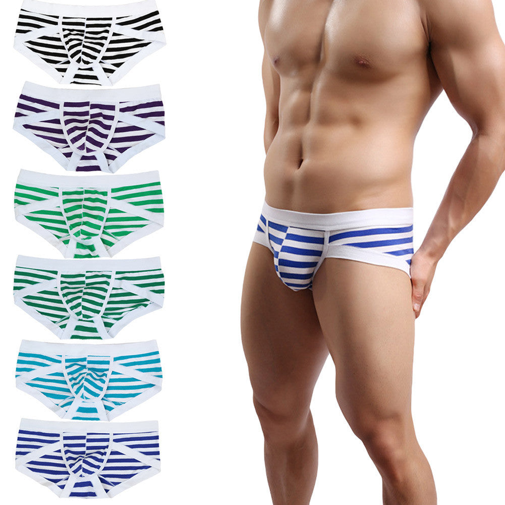 breathable men briefs soft sexy underwear men cotton panties stripe elastic waist stretch comfortable underpants J4U66