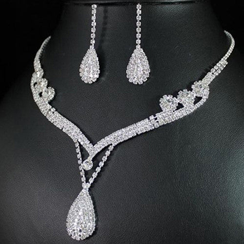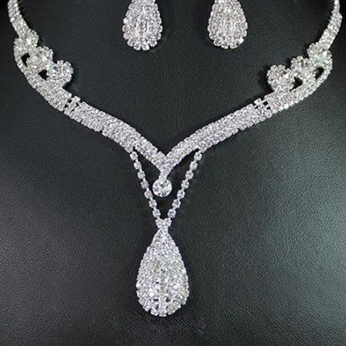 Bridal Chic Crystal Rhinestone Water Drop Necklace Earrings Set Gifts For Women J4U66