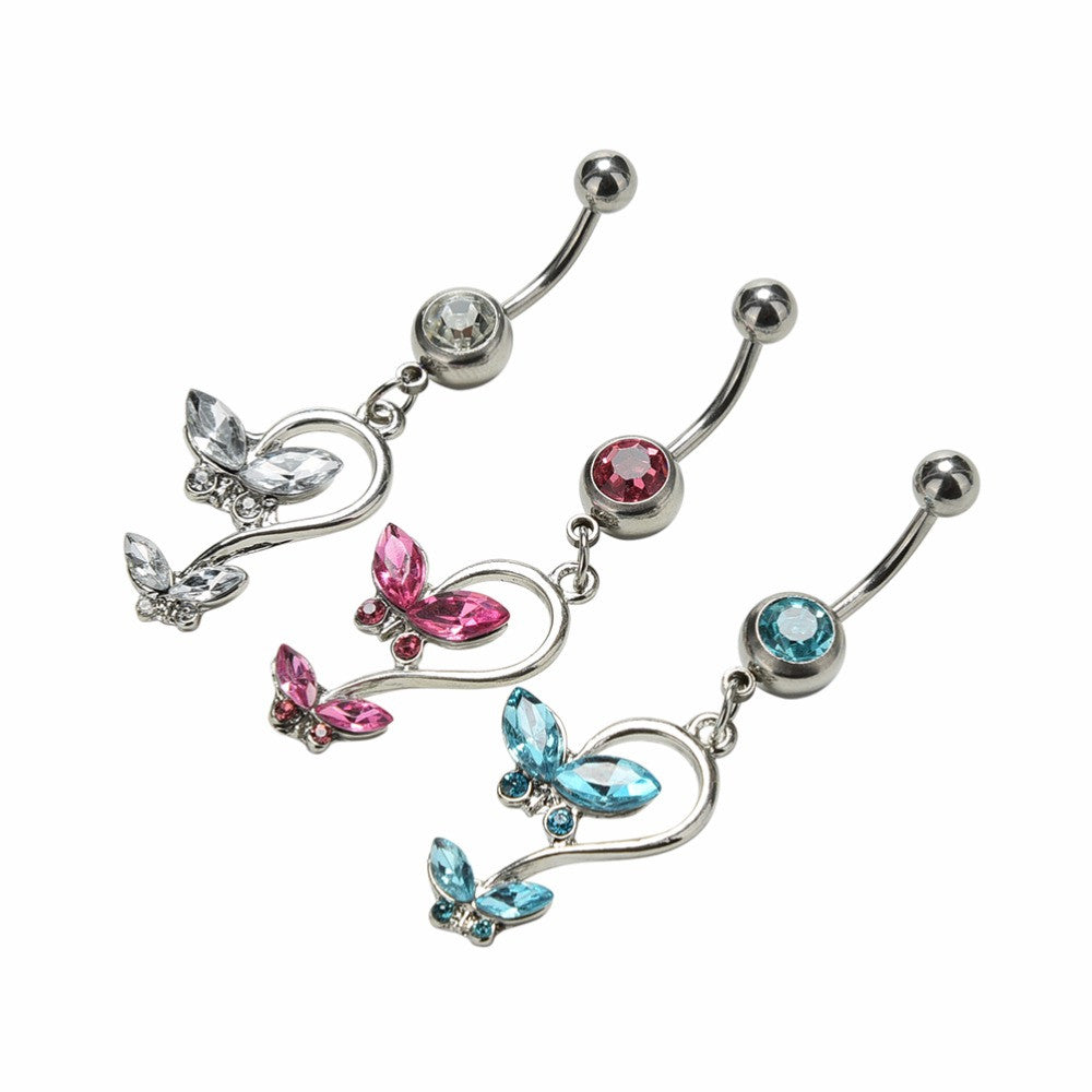 Butterfly Dangle Pendant Ball Button Barbell Bar Belly Navel Ring Body Piercing Jewelry J4U66