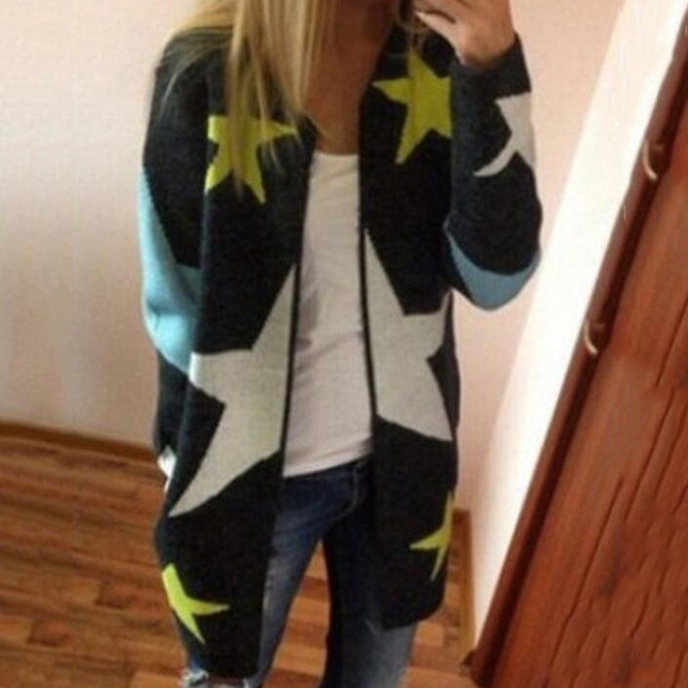 Cardigans Stars Pattern Print Casual Women Long Sweaters Loose Warm Knitted Cardigan Long Sleeve Warm Outwear J4U66