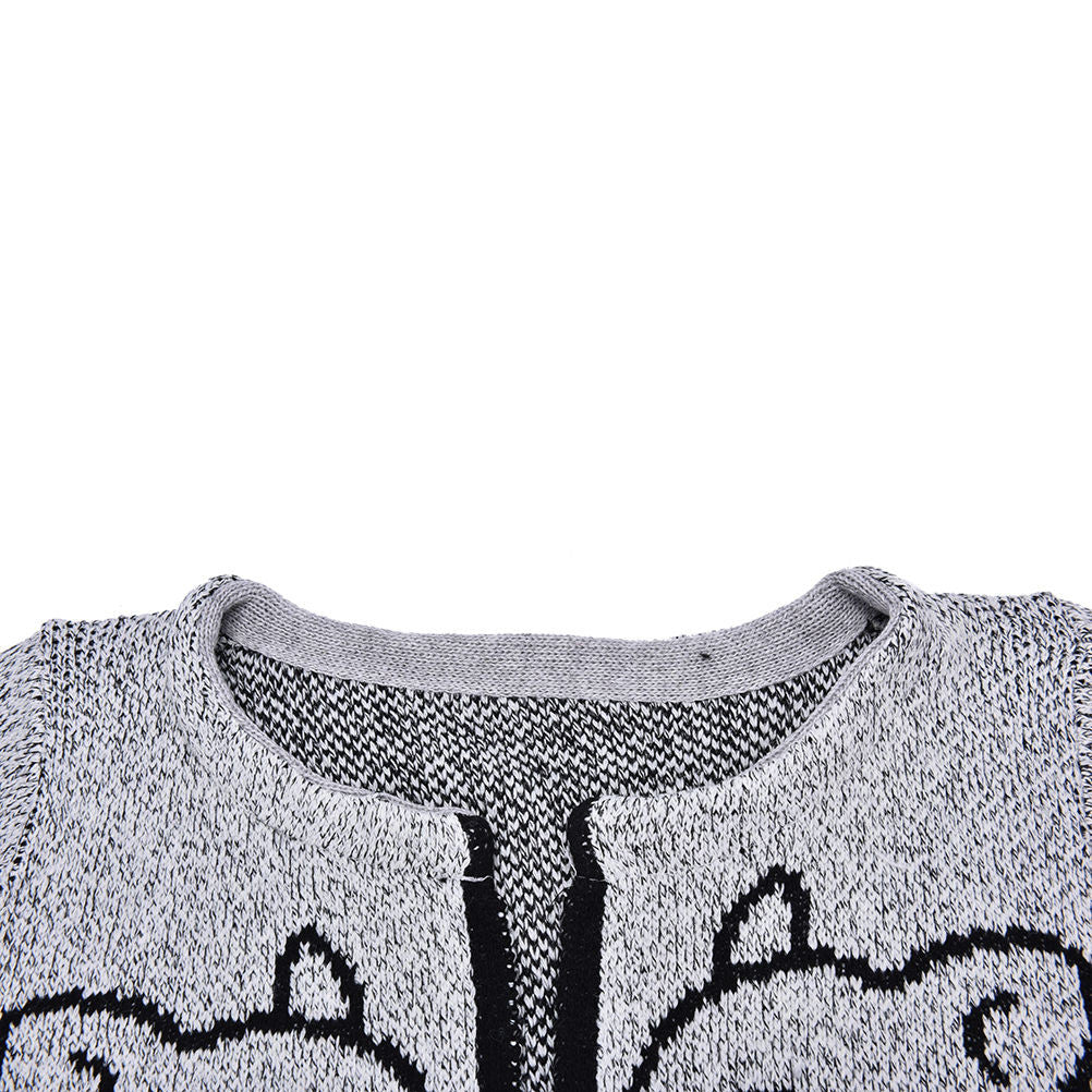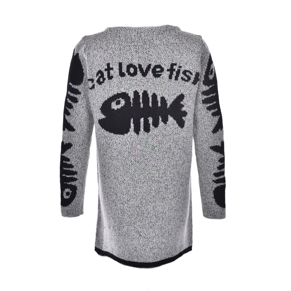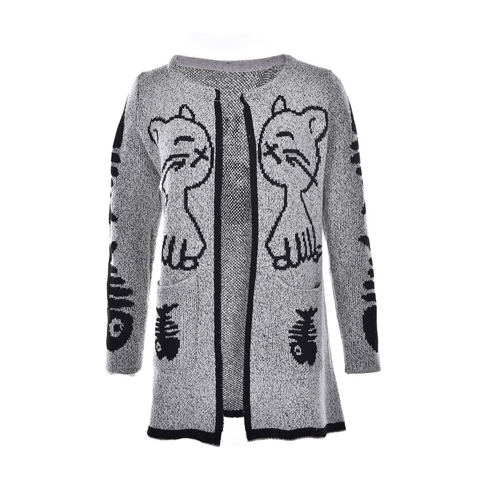 Cartoon Cat and Fish Bones Printing Cardigan Women Long Sleeve Knitted Sweater Cardigans J4U66