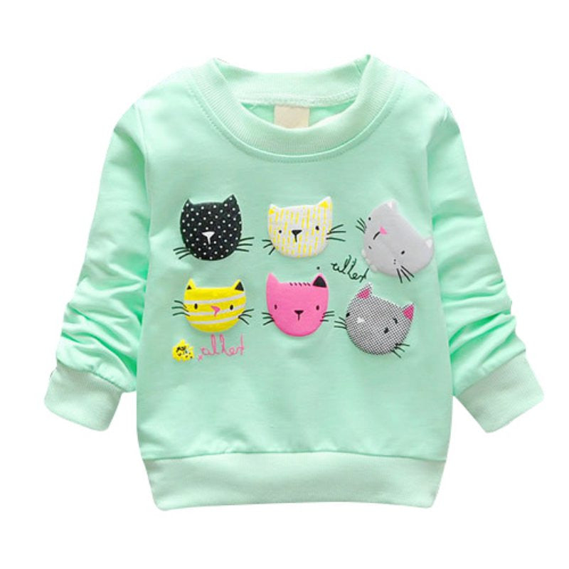 Cartoon Cat Print Girls Sweatshirts Casual Kids Clothes Long Sleeve Baby Girl Pullover Girls Clothing J4U66