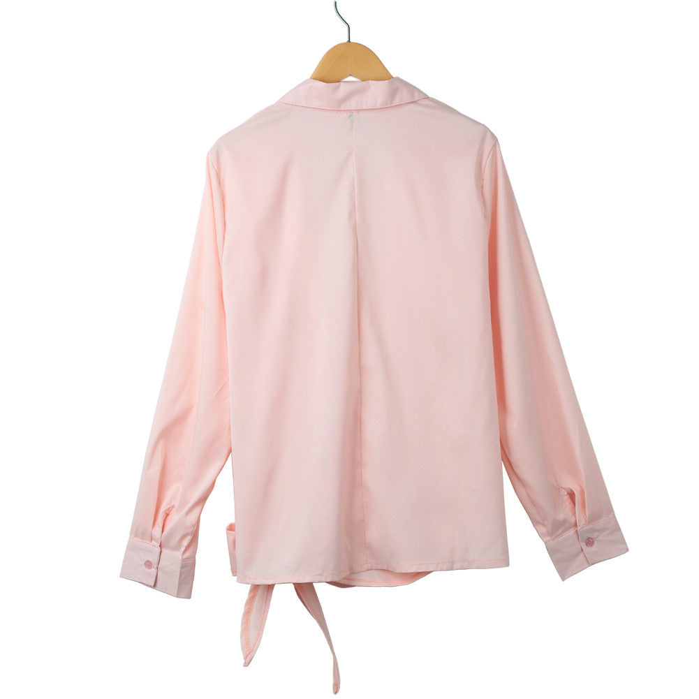 casual blouses women shirt ol bow style turn down collar elegant blouse long sleeve plus size tops women blusas femininas J4U66