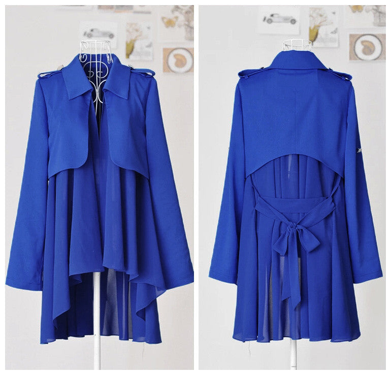 casual cardigan women chiffon coat long sleeve turn down collar thin outerwear trench coat with belt J4U66
