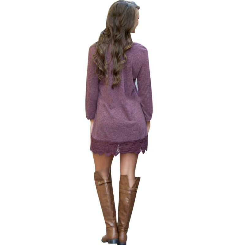 Casual Lace Dress Long Sleeve Knitted Purple DressesJFY66
