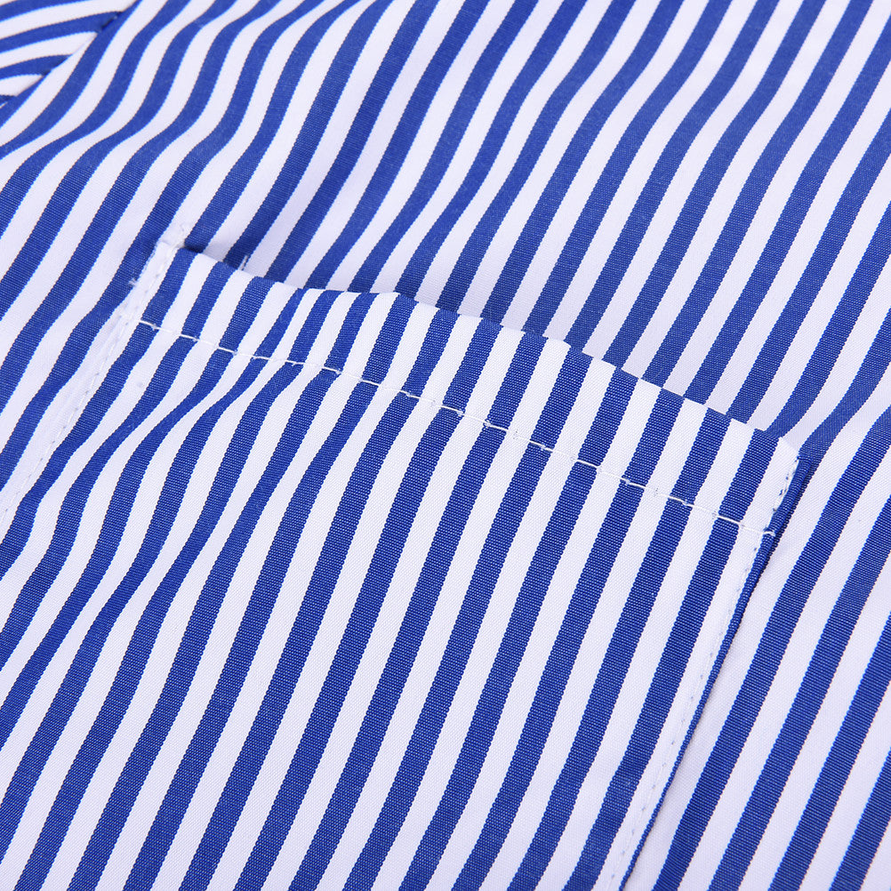 Casual Loose Long Sleeve Tops Street Femme Blusas Cotton Tops White & Blue Women Striped Shirts J4U66
