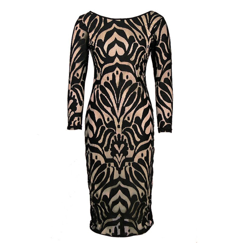 Casual Sexy Bodycon Dress Bandage Tank Evening Party Long Sleeve Lace Pencil Dress J4U66