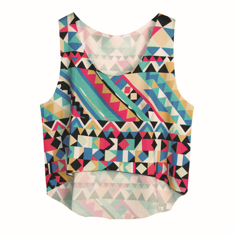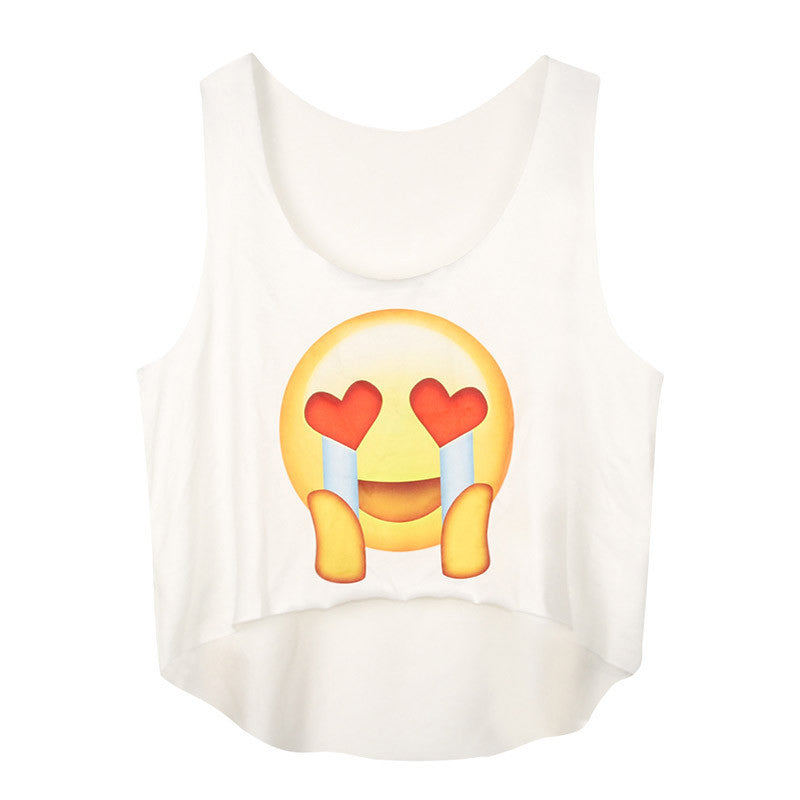 Casual Women Cartoon Crop T-Shirt Emoji Tank Top VBlouse Sleeveless J4U66