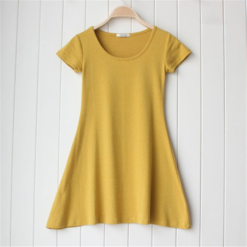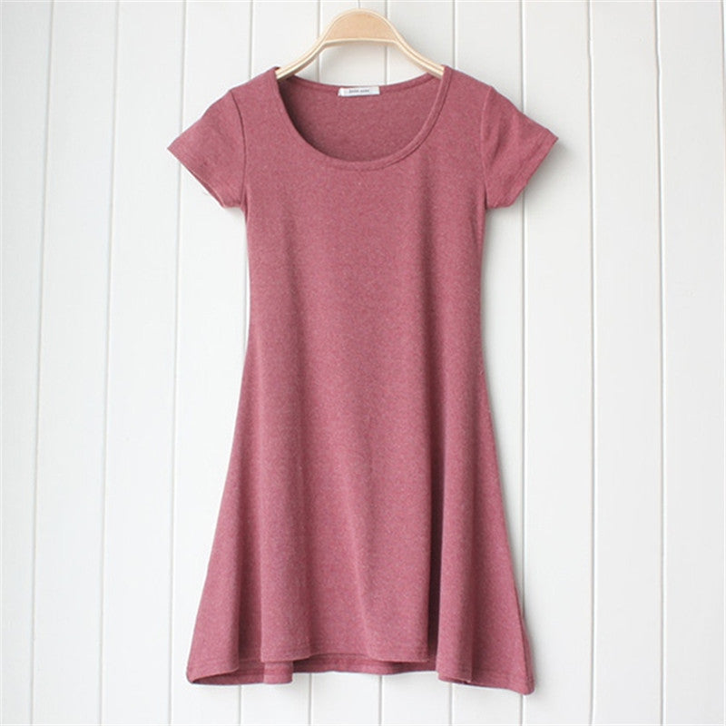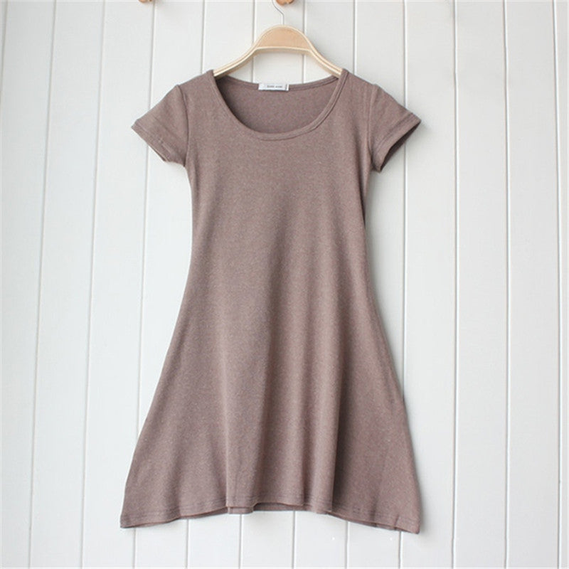 Casual Women Dress Cozy Cotton Solid Slim O Neck Short Sleeve T-shirt Mini Dresses J4U66