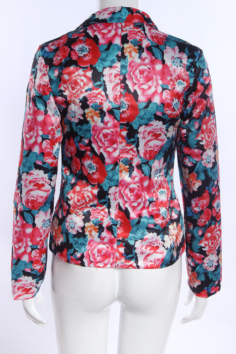 casual women one button jacket slim casual business blazer suit floral coat outwear J4U66