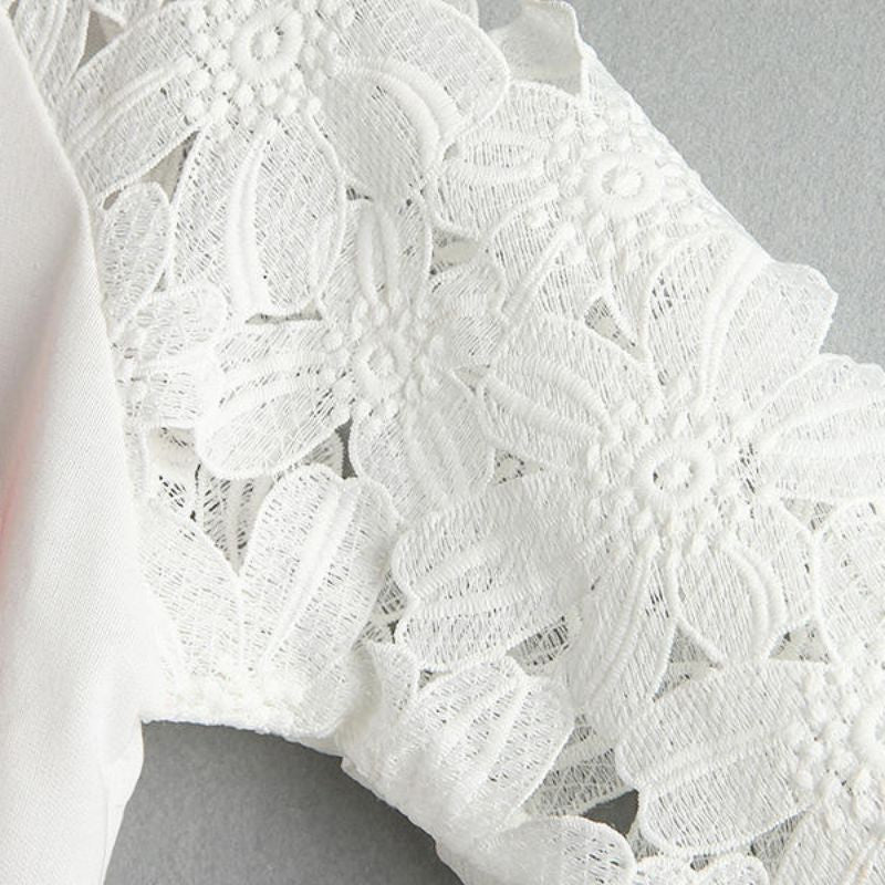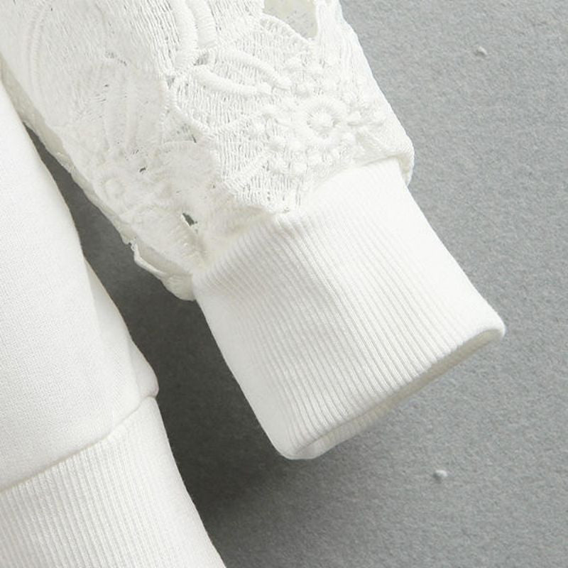 casual women round neck sweatshirts lace hollow out pullovers loose bottom plus size J4U66