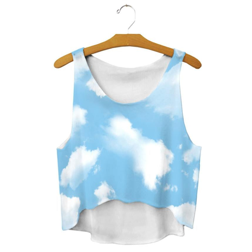 Casual Womens Emoji/Flaky Clouds/Toothy Smile Tank Top VBlouse Sleeveless Cartoon Crop T-Shirt J4U66