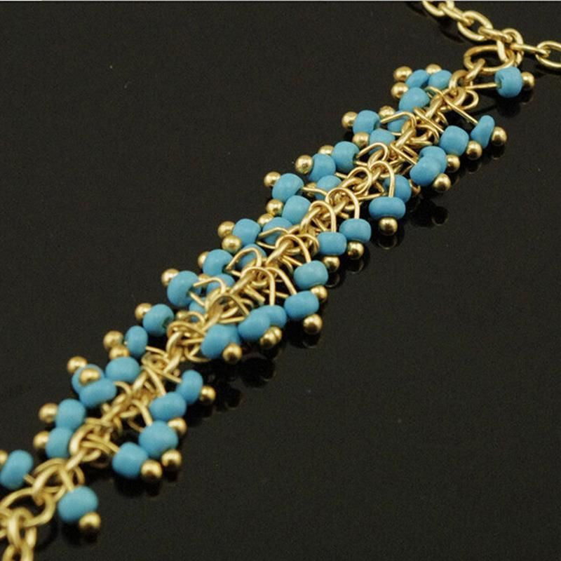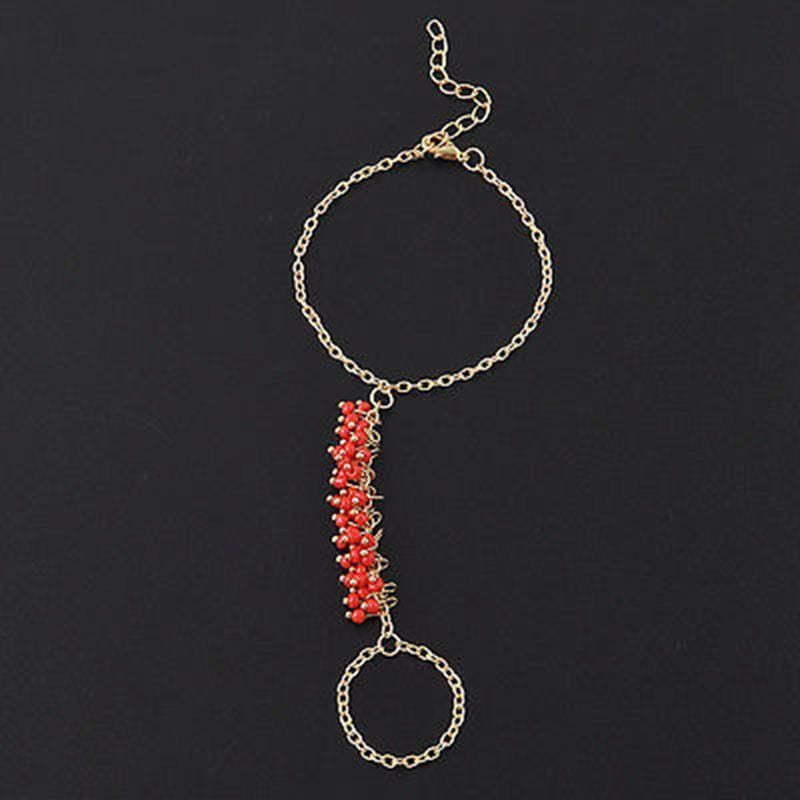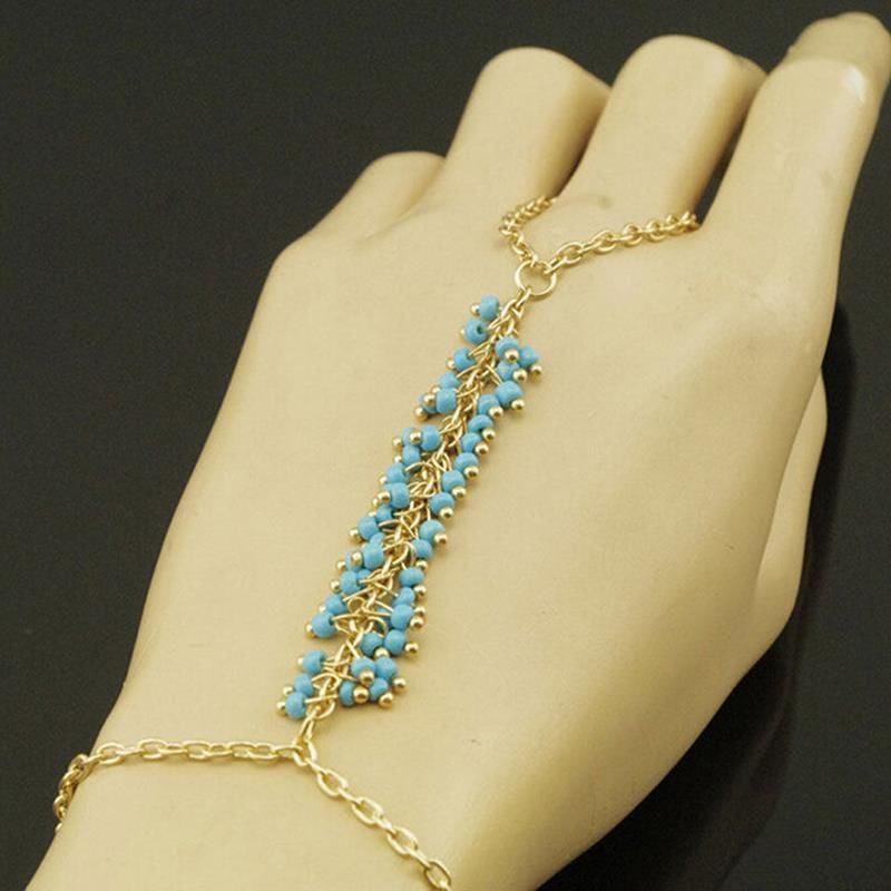 Chain Bracelet Drop Turquoise Beads Slave Finger Ring Punk Gold Plated Women Metal Hand Harness Chain J4U66
