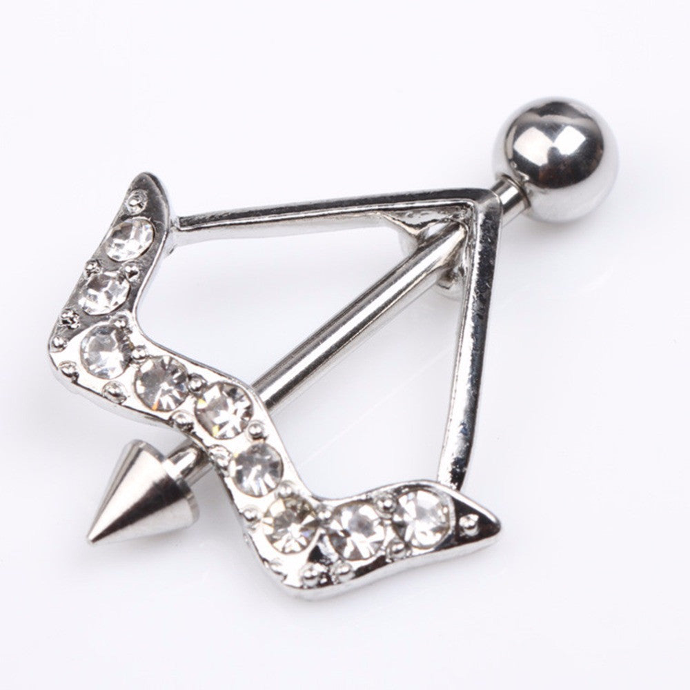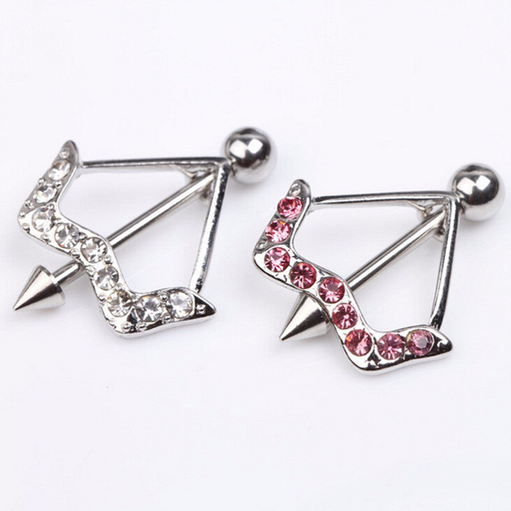 Charming Body Piercing Jewelry Cupid's Arrow Pattern Rhinestones Inlaid Nipple Ring Body J4U66