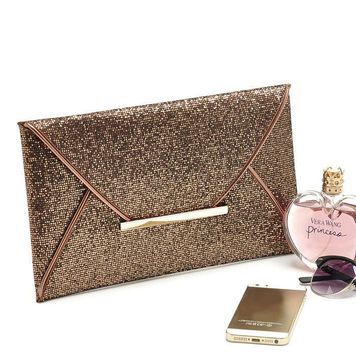 Charming Women Evening Party Bags Gold Sequins Bag Purse Clutch Handbags Envelope Pattern Shiny Purse Bolsas J4U66