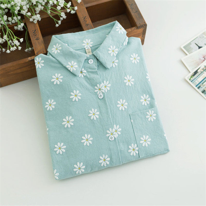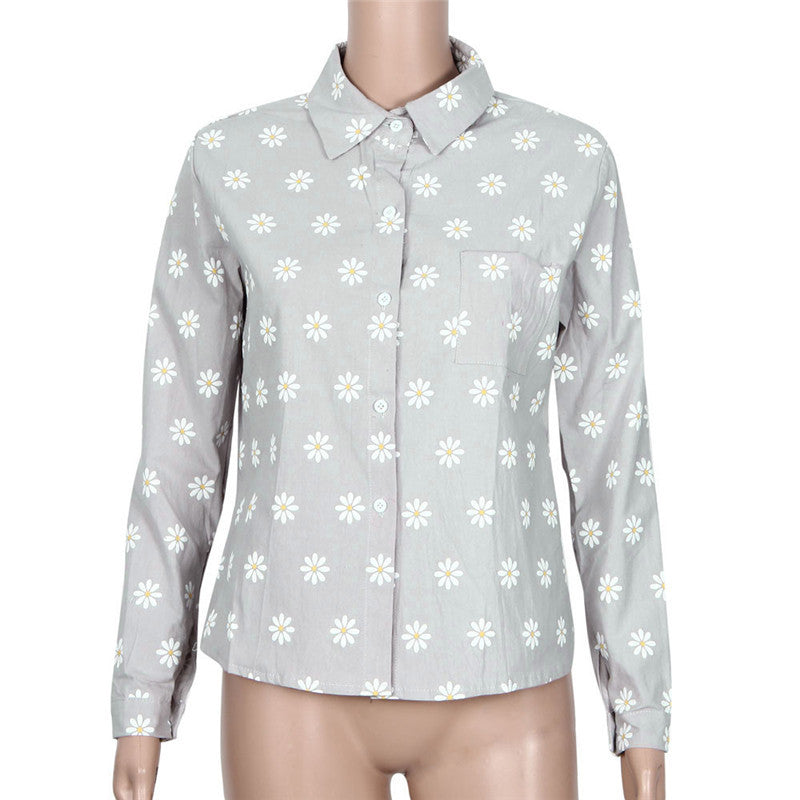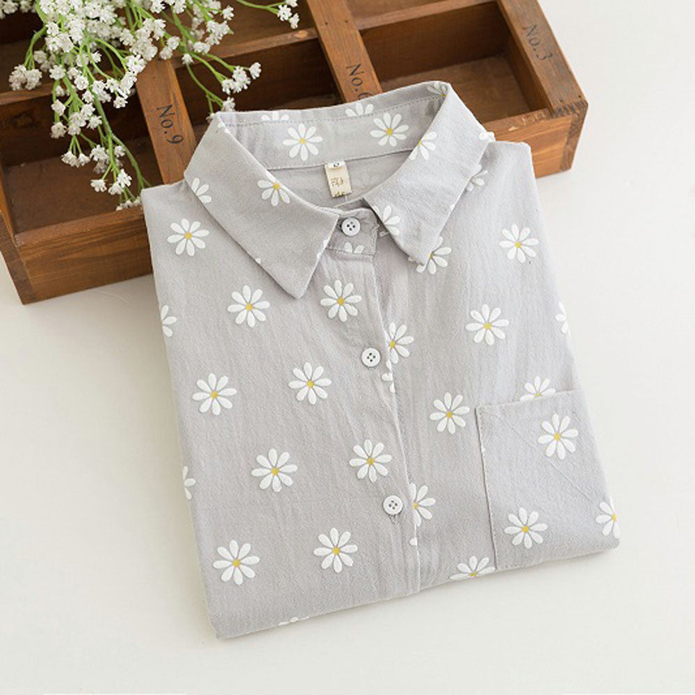 ClearanceWomen Blouses Turn Down Collar Floral Blouse Long Sleeve Shirt Women Camisas Femininas Women Tops And Blouses Fashion J4U66