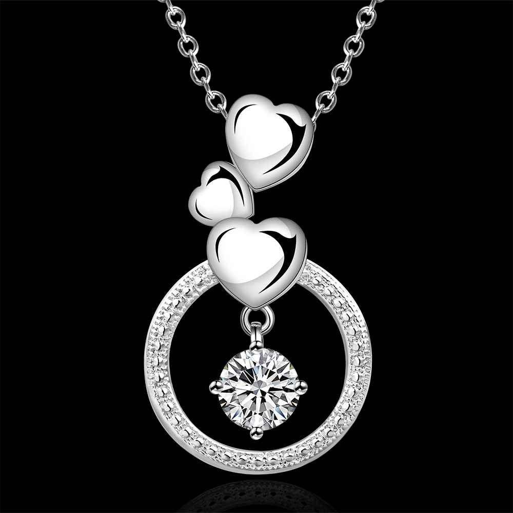 colares femininos sterling silver three heart circle silver plated women necklace chain pendantssmtn1 J4U66
