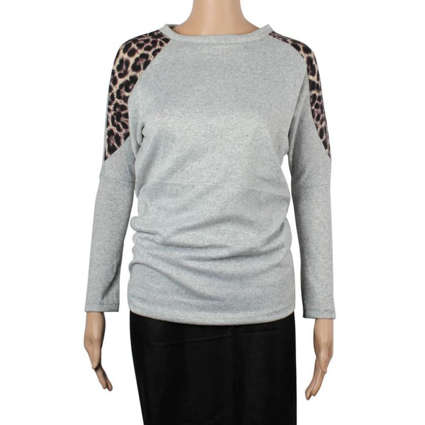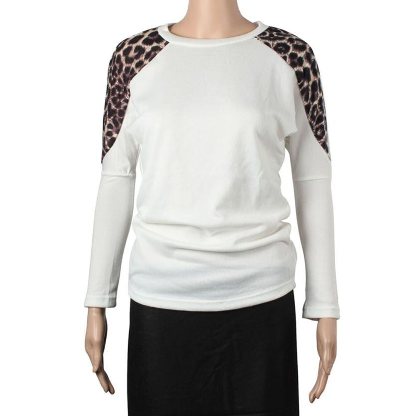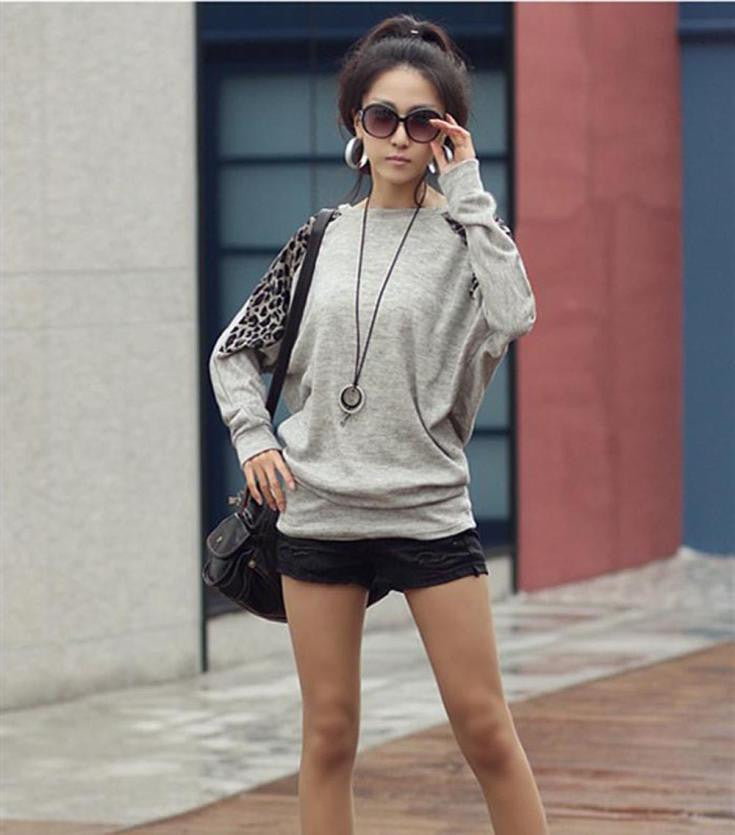 Cotton T-shirt Long Batwing Sleeve Korean Ladies Fashion Leopard Print Casual Loose Shirt Women Tops J4U66