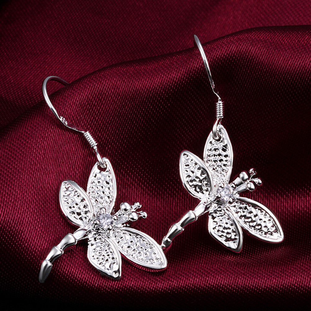 Crystal Dragonfly silver plated Earrings Jewelry trends exquisite beauty of high - quality Drop Earrings Women jewelry J4U66