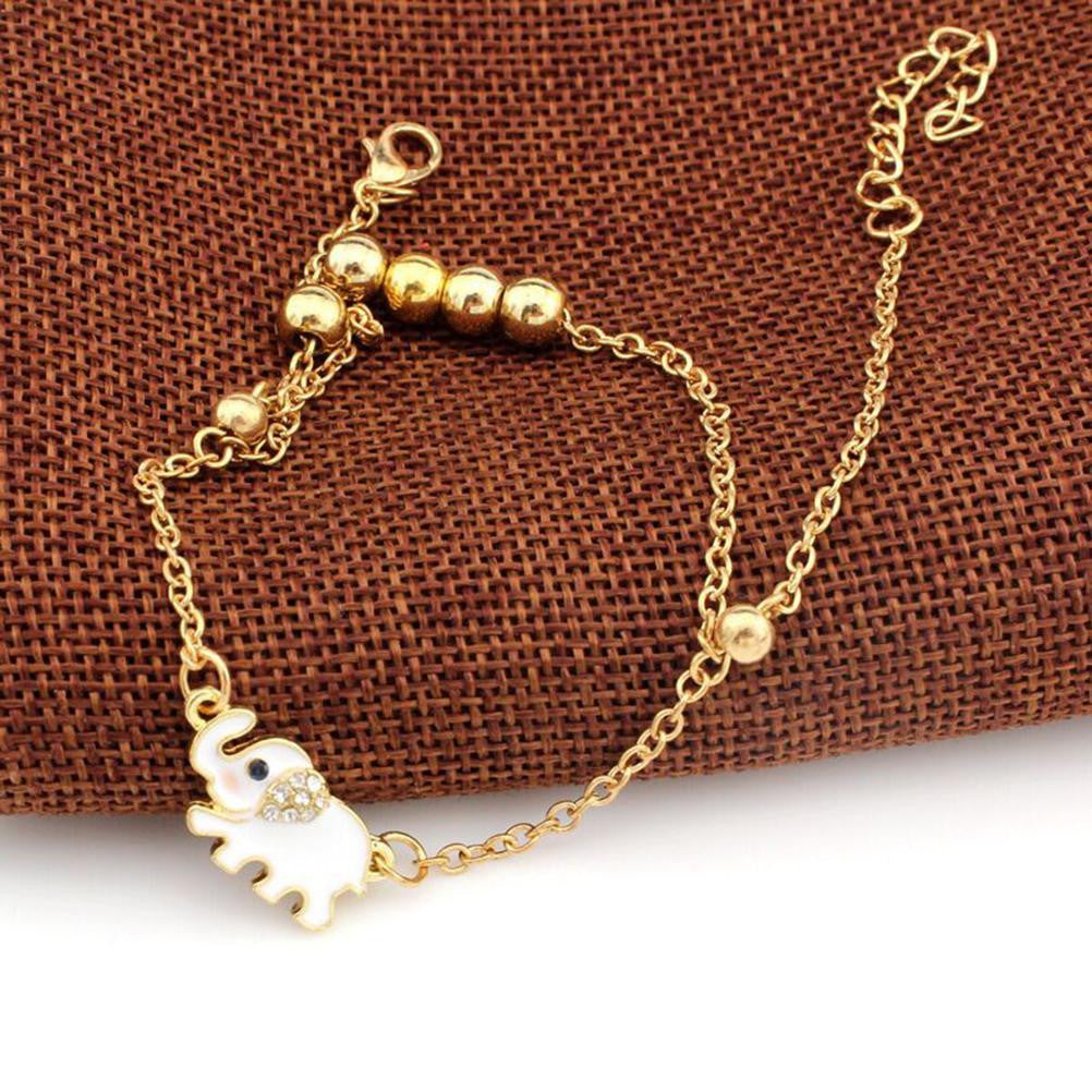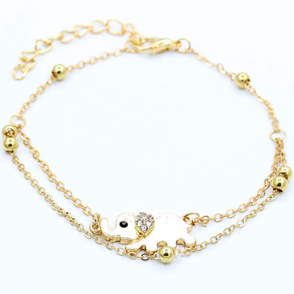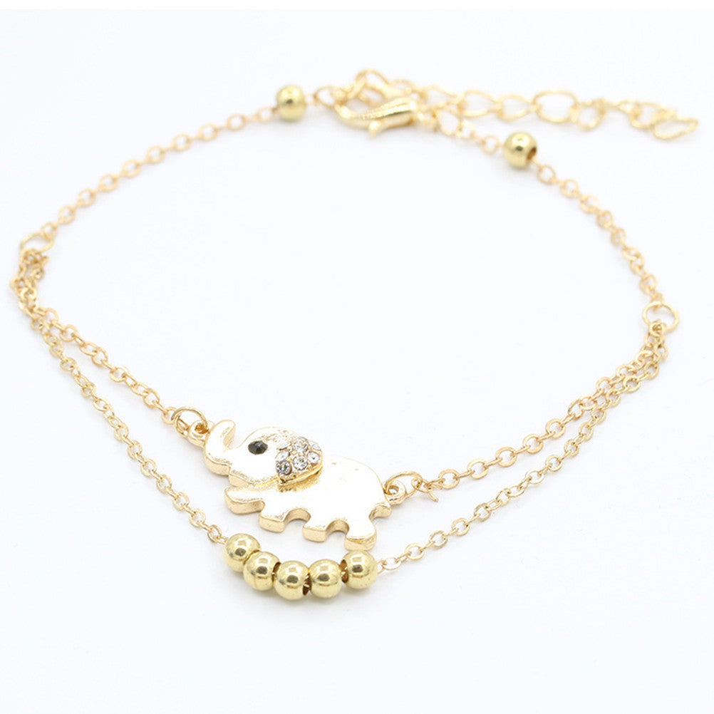 Crystal Elephant Charm Anklet Women gold 2 Layer Link Chain Metal Beads Barefoot Sandal Foot Jewelry Feet Bracelet J4U66