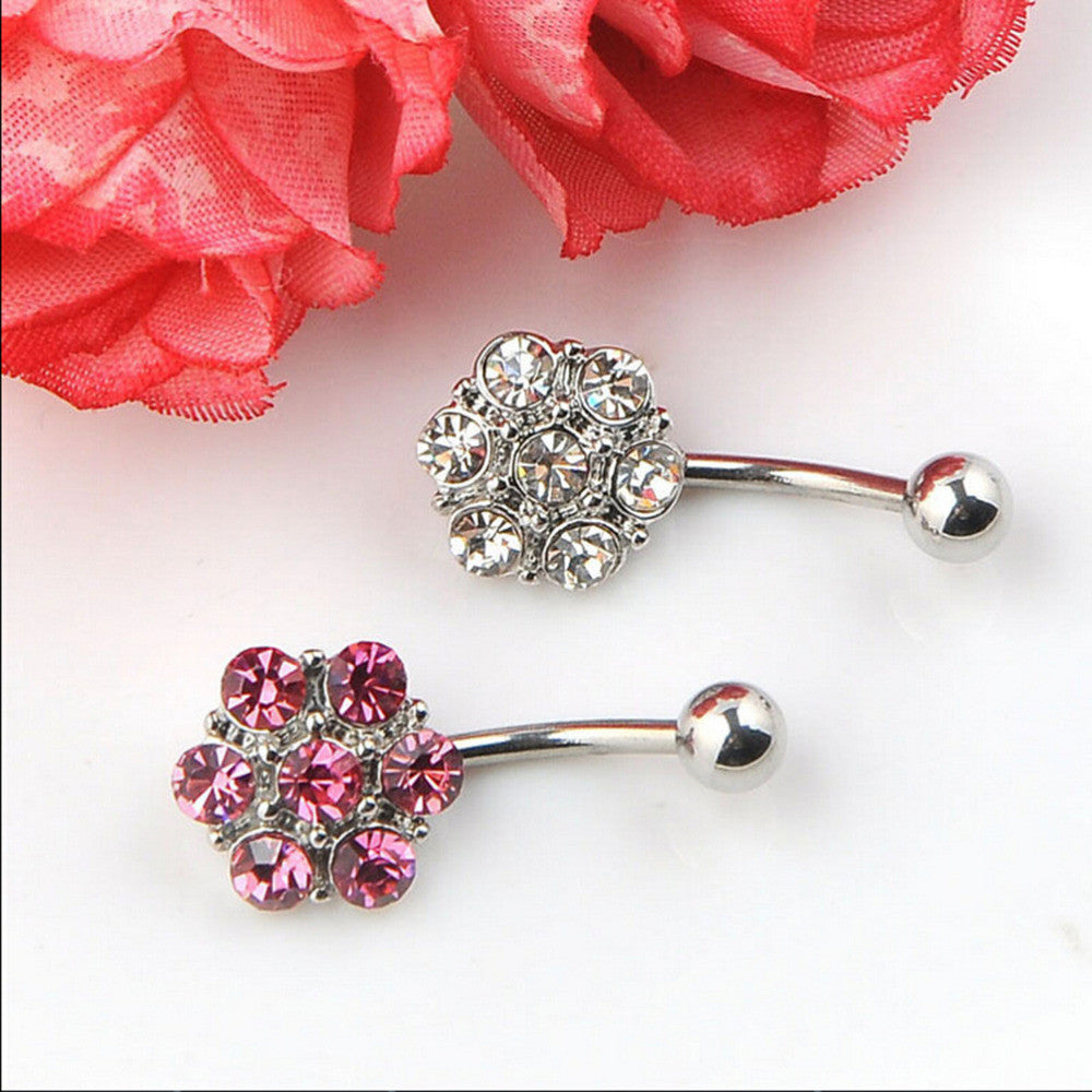 Crystal Flower Surgical Steel Barbell Piercing Belly Button Navel Ring Bar Body Piercing J4U66