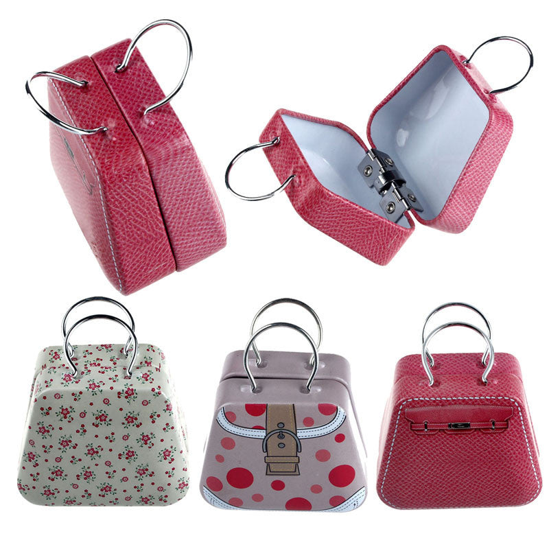 Cute Candy Jewelry Case Storage Box Mini Metal Capsule Handbag Tinplate Coin Bag Case J4U66