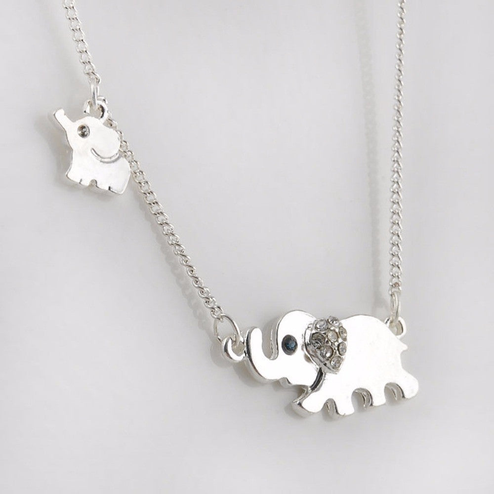 Cute Elephant Family Stroll Women Charming Crystal Chain Necklace Chocker necklace J4U66