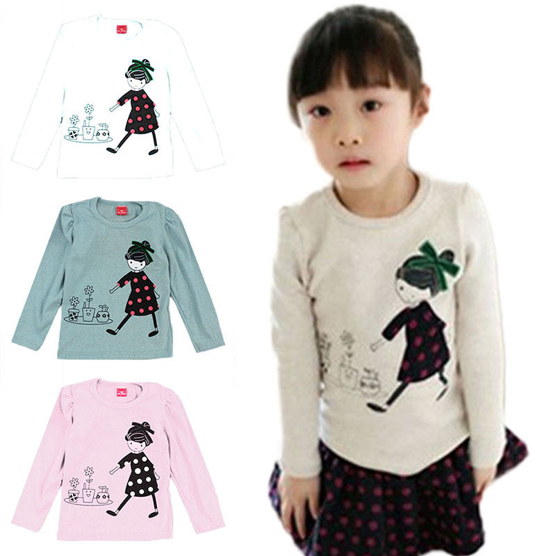 Cute Kids Baby Toddler Girls Tops Crewneck Long Sleeve Shirt Cotton T-Shirt 2-7Y J4U66
