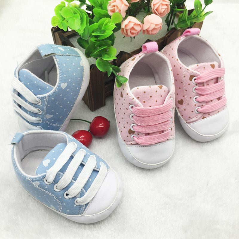 Cute Love Polka Dot Print Crib Shoes Boys Girls Laces Up Anti-Slip Sneaker J4U66
