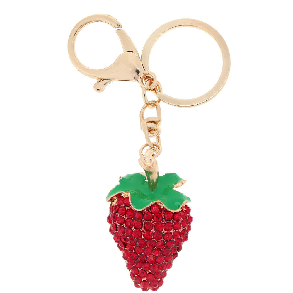 design shinning rhinestone strawberry pendant key ring key chain hollow alloy keychain jewelry J4U66