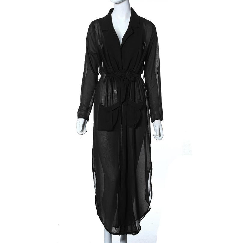 Designer Women Casual Loose Deep V Neck Dress Sexy Split Chiffon Dress Plus Size J4U66