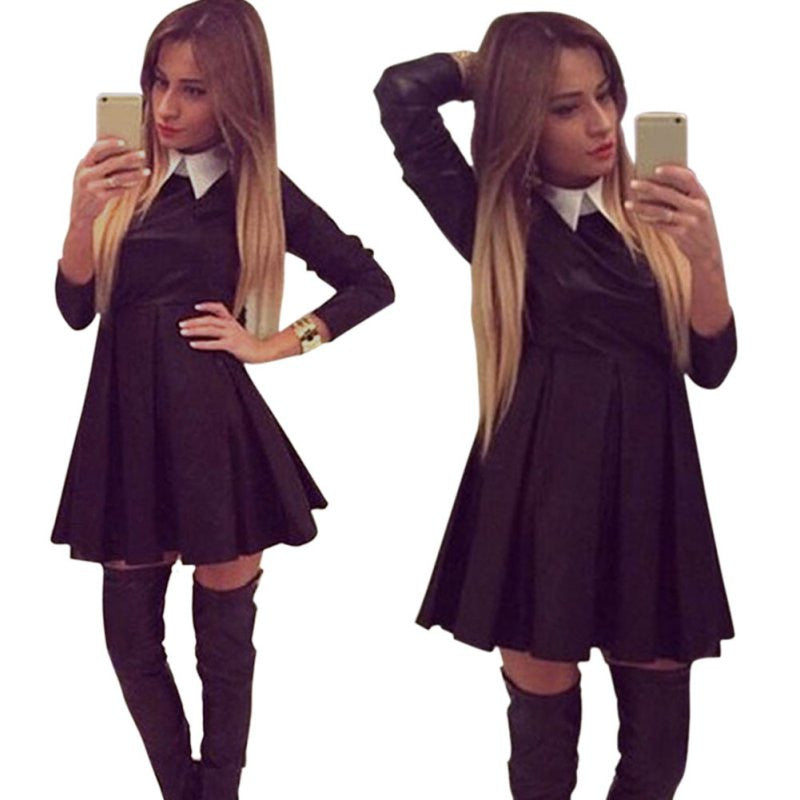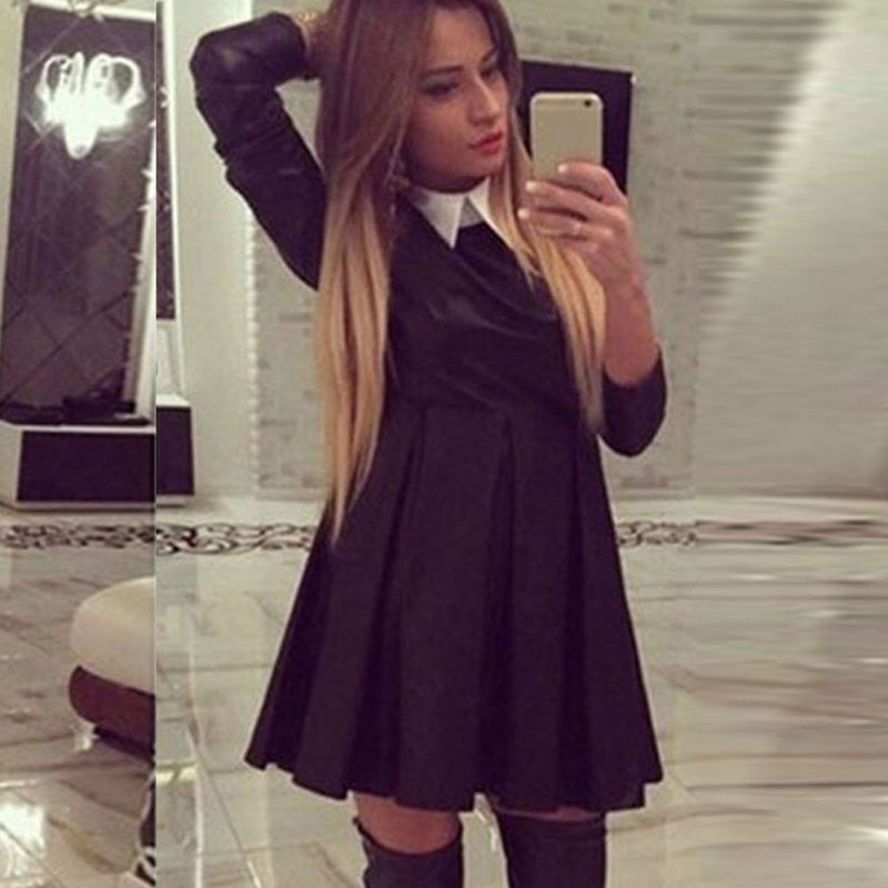 Doll Collar Slim Long Sleeve Dresini Skater Dresses PY8 J4U66