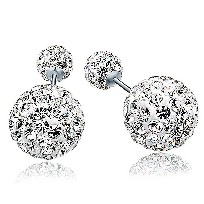 Double Side Earrings For Women Jewelry Crystal Ball Simulated Pearl Jewelry Trendy Stud Earrings J4U66