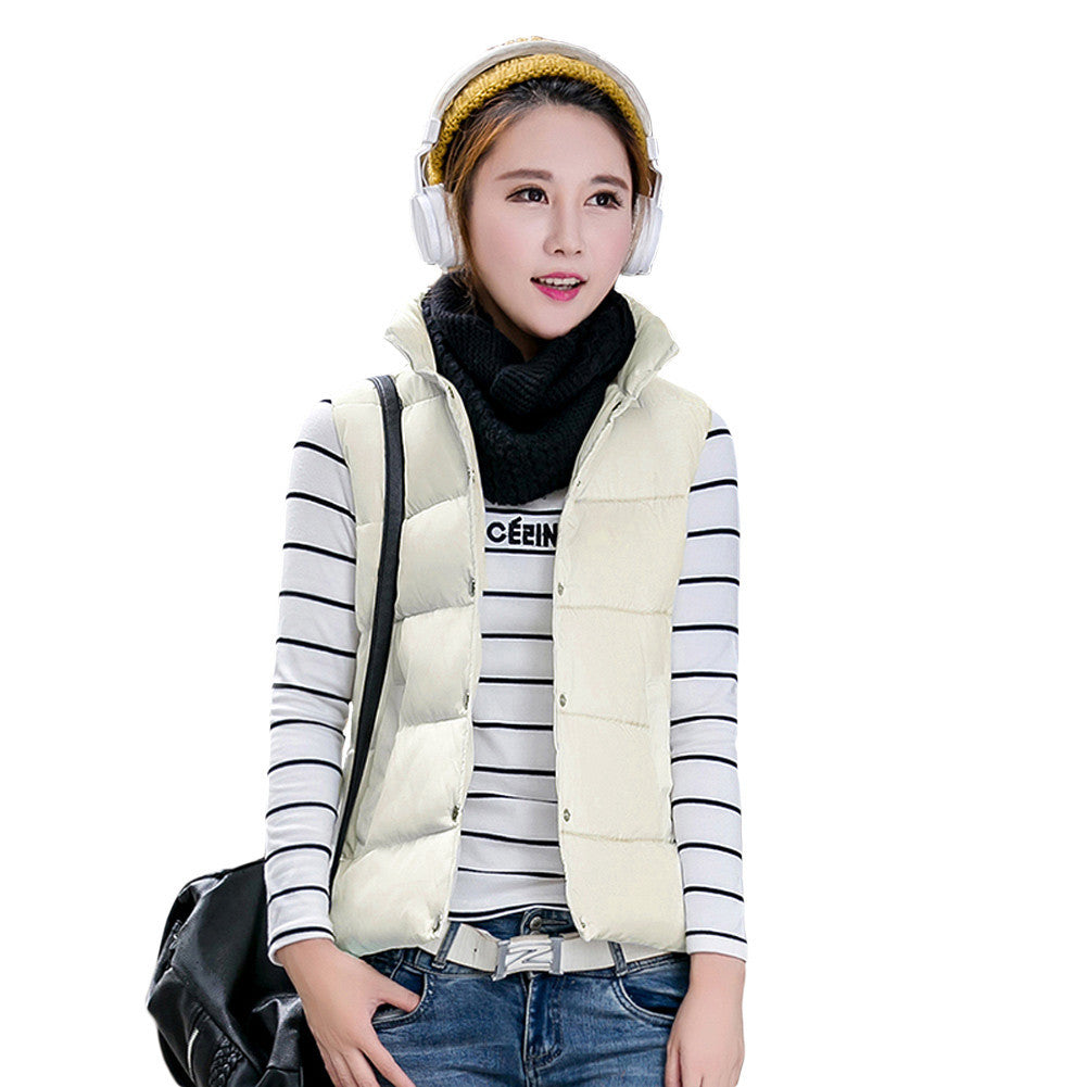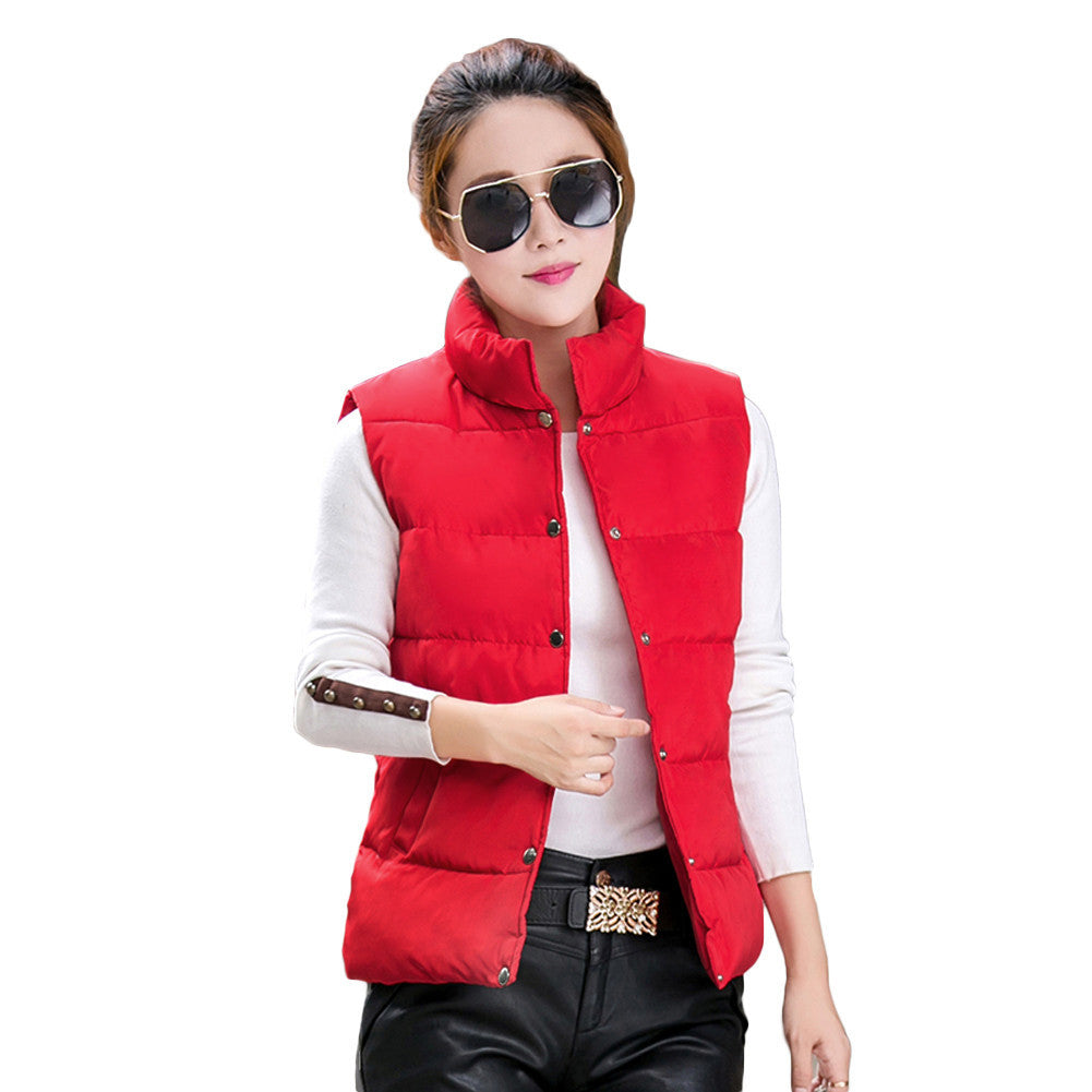 down jacket stand collar sleeveless women coat stud press pockets padded vest coat outerwear J4U66