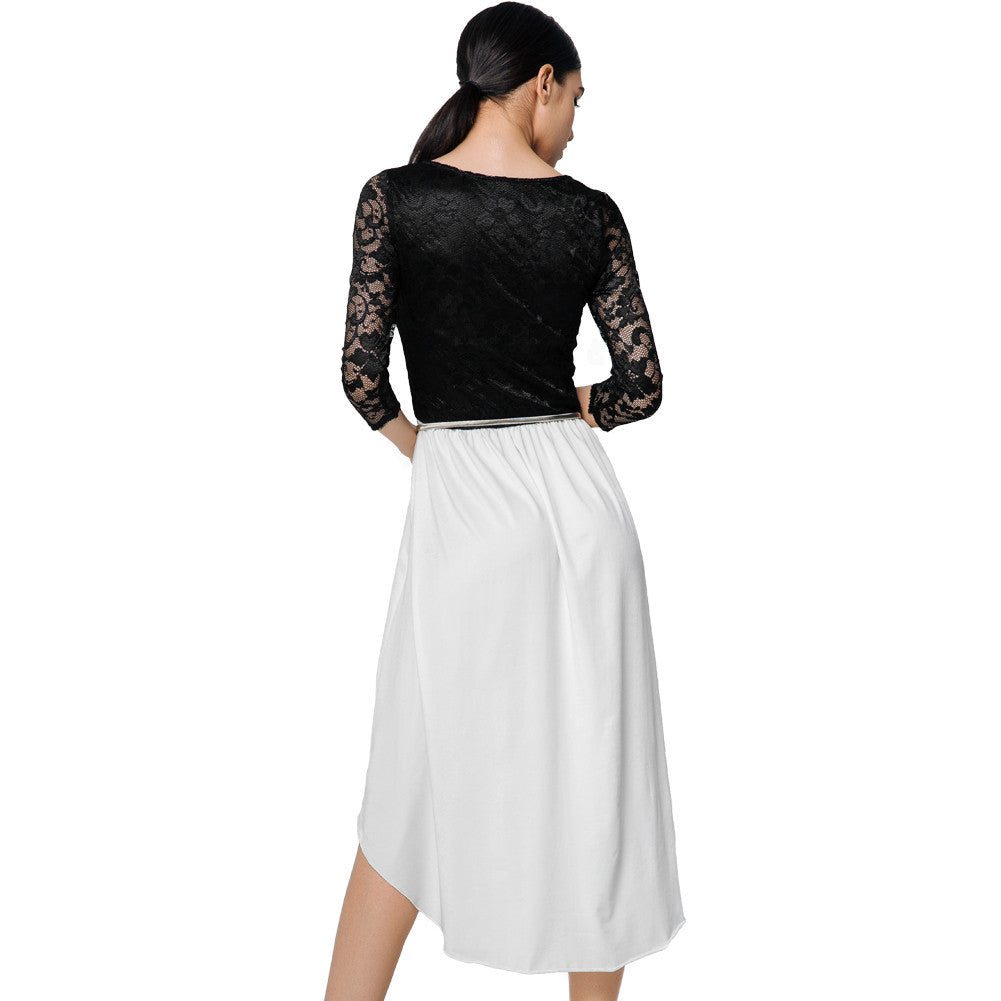 dress 3/4 sleeve lace women mid calf dress asymmetric hem hollow out vintage party dresses vestidos J4U66