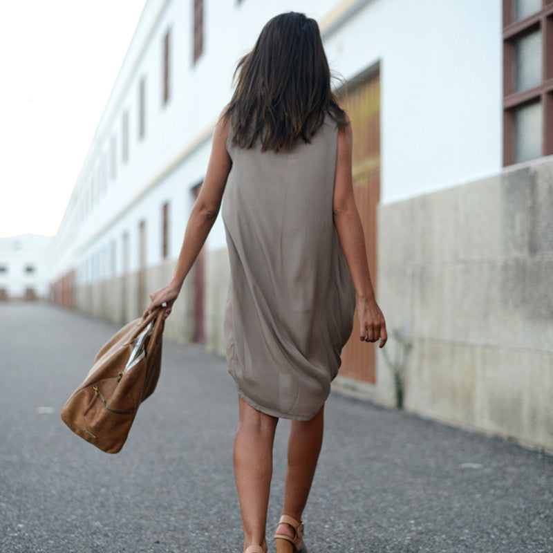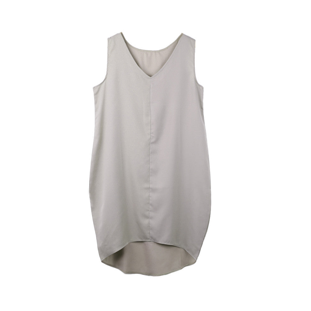 dress women high street v neck sleeveless casual dress high low hem asymmetric loose dresses femme J4U66