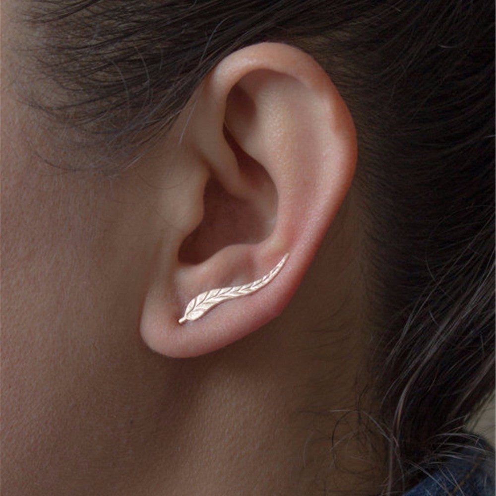 Ear Sweep Wrap Silver & Gold Ear Climber Leafs Ear Clip Cuffs Earrings for Women Jewelry J4U66