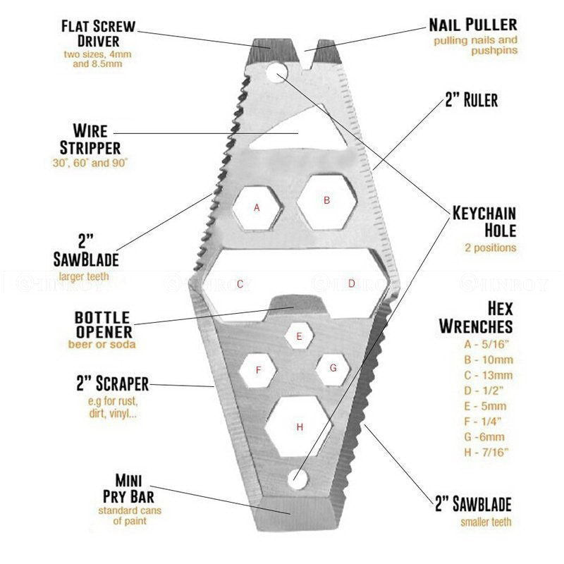 EDC Multifunction Bottle Opener Wrench Screwdriver Saw Blade Ruler Key Chain Outdoor Survival Hiking Portable Pocket Multi Tool J4U66