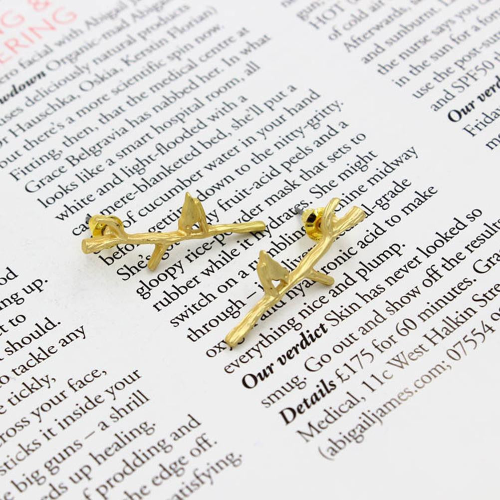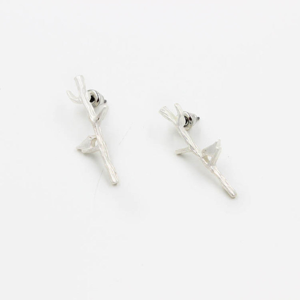 Elegant Bird Tree Branch Shaped Alloy Woman Earrings Gold Sliver Plated Jewelry Accessories J4U66