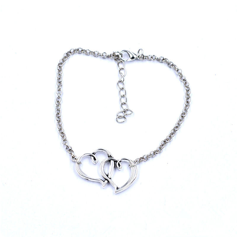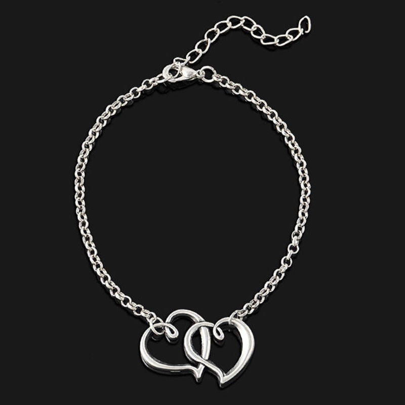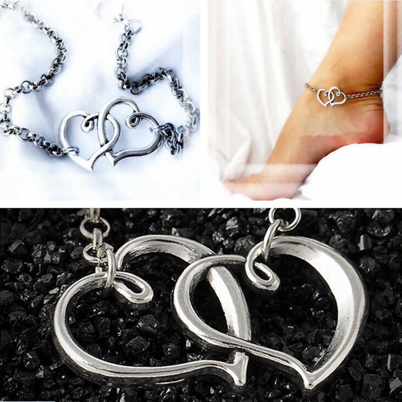 Elegant Double Heart Chain Ankle Bracelet Barefoot Sandals Anklets For Women sandalia feminina J4U66