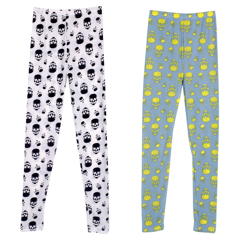 Elegant Fashion Ladies High Waist Yellow White Pants Printed Stretch nine Points Leggings Women Trousers J4U66