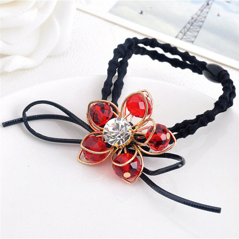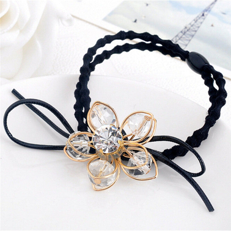 Elegant Flower Women Hair Rope Flower Scrunchy Crystal Materail Elastic Hair Band For Women Hair Accessories J4U66