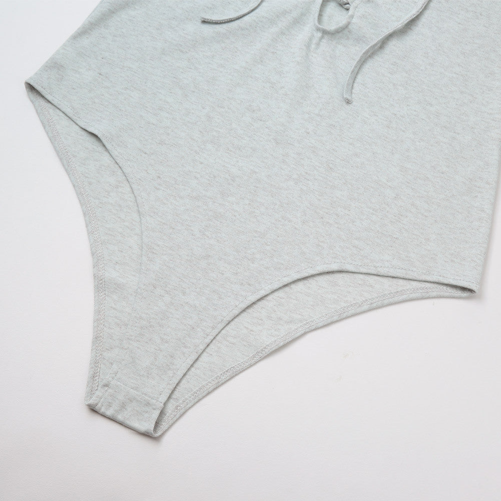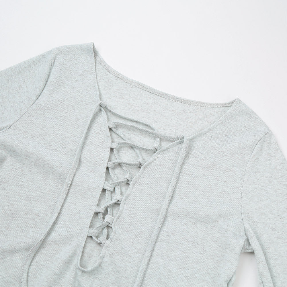 elegant jumpsuit sexy women lace up bodysuit rompers tie front long sleeve stretch slim playsuit salopette ol overalls grey J4U66