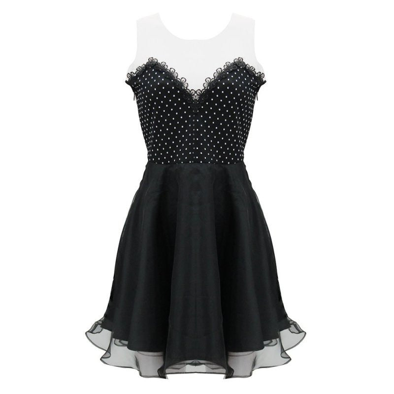 elegant woman sexy a line black deep v neck backless dress mini short tulle dress to party J4U66