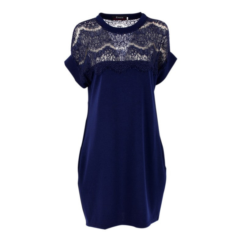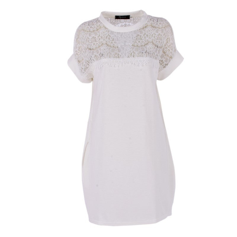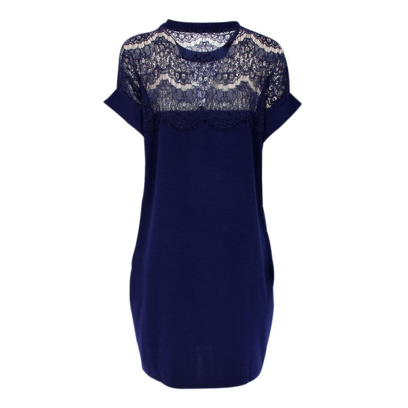 Elegant Women Lace Dresses Hollow Out Loose Sexy Short Casual Dress J4U66