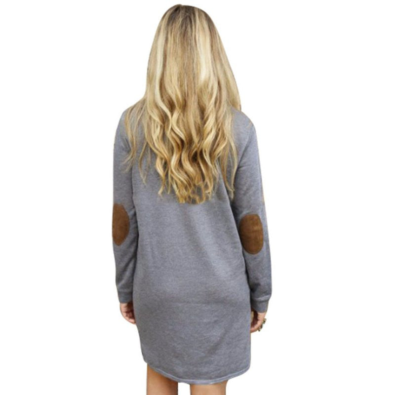 elegant women long sleeve dresses long tops jumper pullover sweatshirt mini dress J4U66