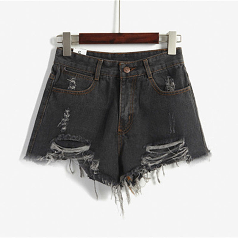 European and American BF Wind Blue High Waist Denim Shorts Women Worn Loose Burr Hole Shorts J4U66