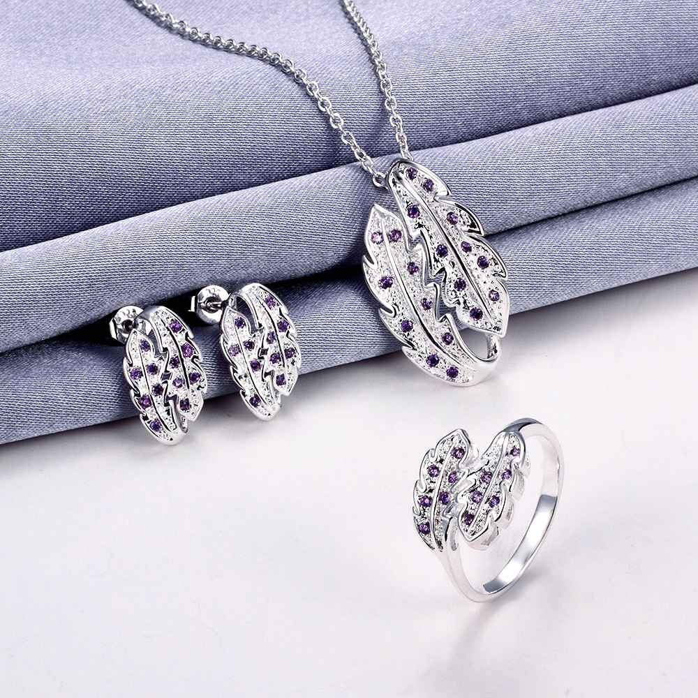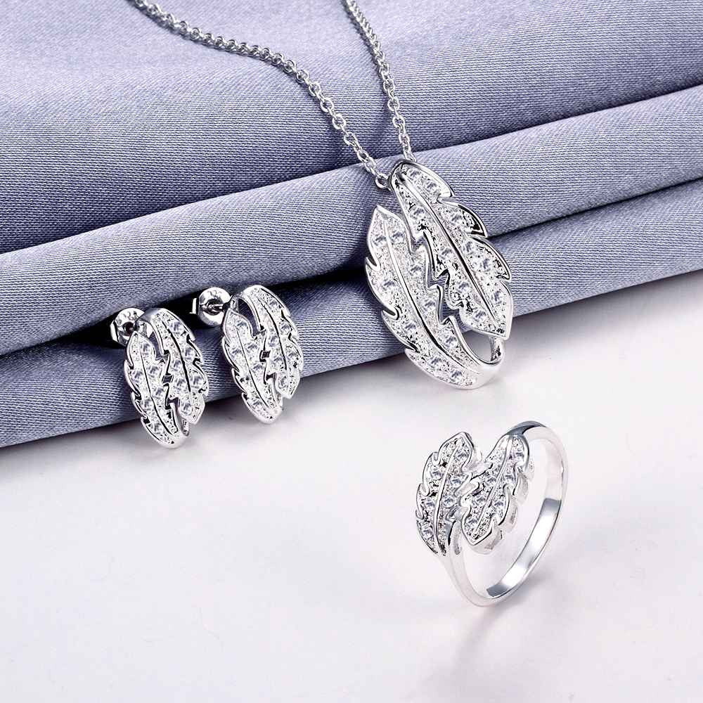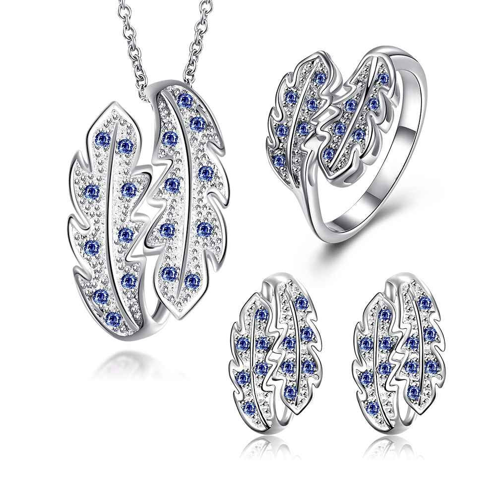 exo silver plated jewelry set willow crystal necklace ring earrings bijoux J4U66