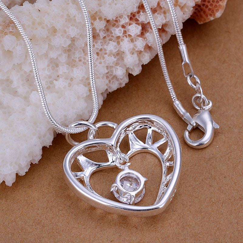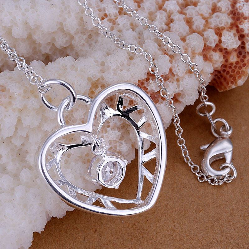 exo silver plated pendant necklace inlaid stone heart shaped bead necklace ruby jewelry J4U66