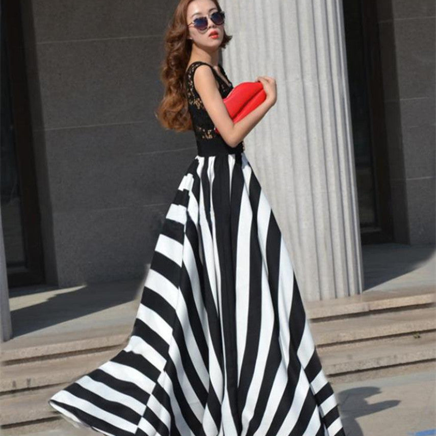 exy Women Long Maxi Evening Party Beach Lace Chiffon Dress J4U66